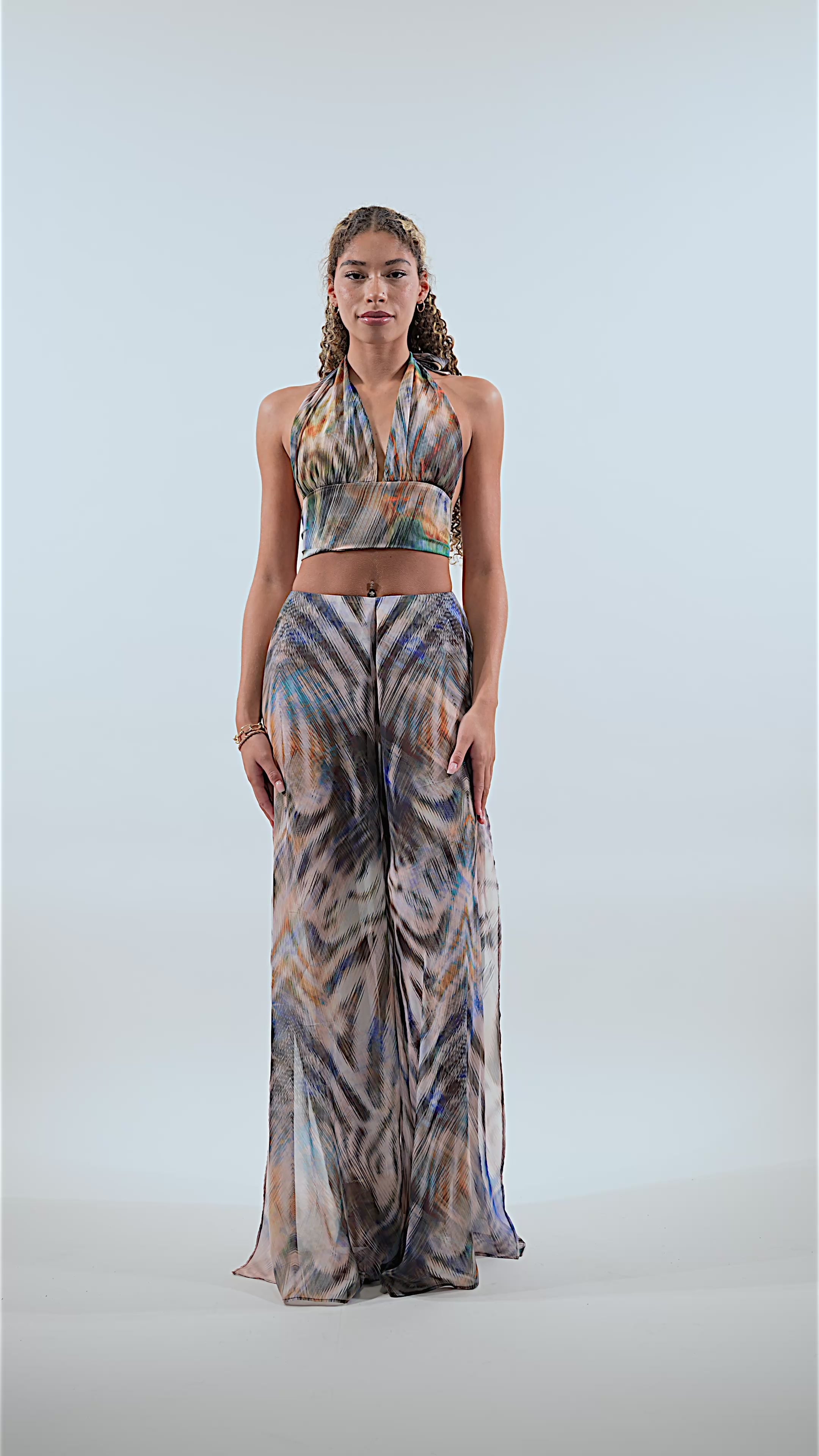 Unveil your bold side with the Tahlia Animal Print Halter Top. Crafted from exquisite Italian chiffon, this one-of-a-kind piece radiates effortless sensuality with its striking animal-inspired design. The halter ties at the neck and back allow for an adjustable, flattering fit, while the airy, slightly sheer chiffon creates a breezy, ethereal feel.